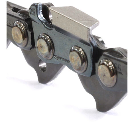 Chaîne chisel avec des dents tranchantes rectangulaires et des maillons entraîneurs de sécurité. Chaîne de tronçonneuse haute performance pour une utilisation professionnelle.
