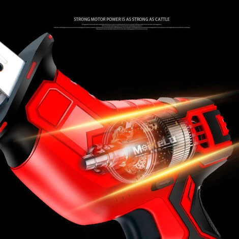 Mini tronçonneuse sans fil portable : cette tronçonneuse sans fil portable pèse 1,1 kg, a de faibles vibrations et peut être utilisée d’une seule main, ce qui permet d’économiser du temps et des efforts. Le moteur en cuivre pur dispose de plusieurs trous de refroidissement pour une ventilation et une dissipation thermique efficaces. Un pare-éclaboussures et un verrou de sécurité ont également été ajoutés.