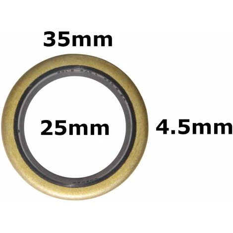 2 joints SPI ; Diamètre intérieur = 25mm ; Diamètre extérieur = 35mm ; Epaisseur = 4,5mm ; Compatible avec Briggs & Stratton 7cv 8cv ; Référence d’origine : 294 606 ;