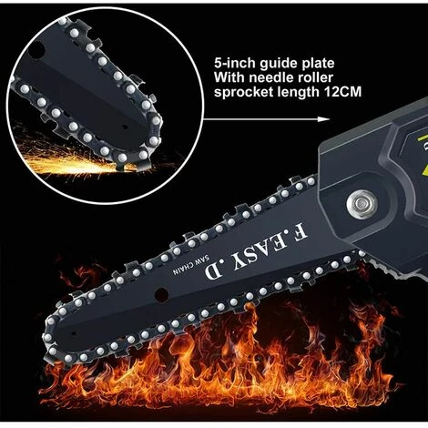 - 3. Scie électrique sans fil: Cette scie électrique sans fil au lithium-ion utilise une chaîne de guidage de haute qualité, qui a été profondément durcie pour assurer une coupe en douceur. La conception des dents en bois peut rendre la tronçonneuse coincée dans les branches, coupant plus efficacement et plus rapidement.