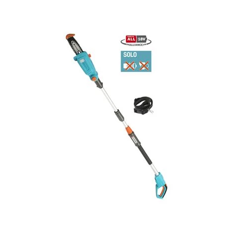 L’élagueuse sur perche sans fil GARDENA est équipée d’une butée de coupe, d’une bandoulière et d’un réservoir d’huile d’une capacité de 60 ml.