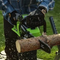 La nouvelle scie à chaîne sur batterie GD40CS15 de la marque Greenworks est dotée d’une vitesse de chaîne impressionnante de 12 m/s. La barre de 35 cm rend cette tronçonneuse exceptionnelle parfaite pour couper les petits arbres ainsi que pour élaguer les branches. L’interrupteur de démarrage instantané contribue à une manipulation rapide et simple, et les faibles niveaux de bruit vous permettent de travailler sans déranger vos voisins. L’outil fournit jusqu’à 30 % de puissance en plus grâce à son puissant moteur sans balai. Un fonctionnement de sécurité à deux boutons vous assure d’éviter tout démarrage accidentel.