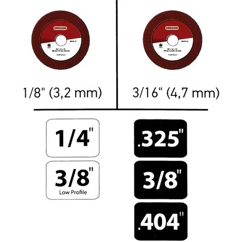 – Inclus : 1 meule 3/16′ (4.7 mm) pour affûter les chaînes .325′, 3/8′ et .404′