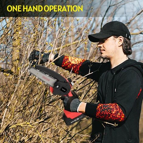 Tronçonneuse électrique sans fil de 6 pouces, offrant une efficacité de coupe élevée avec son matériau de qualité et son moteur puissant. Conception rechargeable, débarrassez-vous de la gêne occasionnée par les câbles pour une utilisation plus pratique. Avec serrure de sécurité et protection anti-éclaboussures double protection de sécurité. Convient pour la coupe de bois, l’élagage de branches d’arbres, le jardinage, etc.