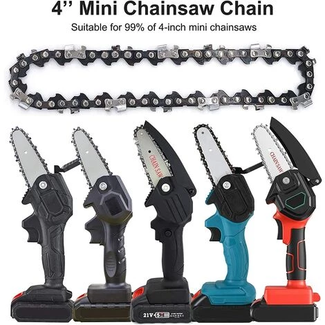 【Compatible avec les mini-tronçonneuses 4 pouces】La chaîne de tronçonneuse est un accessoire original, compatible avec toutes les mini tronçonneuses de 4″ sur le marché comme 20 V, 21 V, 24 V, 26 V, etc. Une fois que la chaîne est fixée à la machine, elle peut être utilisée immédiatement sans aucune mesure supplémentaire.