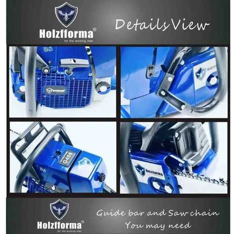 Tronçonneuse Holzfforma G466 avec moteur 2 temps de 76.5cc puissance 4.4Kw à 11500 tr/min. Guide 60cm de coupe, chaine 3/8 84 maillons. Contenances : Carburant 0.83 litre, Huile 0.36 litre. Accès rapide au filtre à air, tension latérale. Poids : Environ 6.6Kgs à vide (sans guide chaine) soit environ 8Kgs équipée et pleins faits Répond aux dernières normes Européennes en vigueur (certificat disponible sur demande) IMPORTANT : Les tronçonneuses Holzfforma ont un suivi de pièces détachées, nous sommes en mesure de vous fournir toutes les pièces pour cette tronçonneuse qui offre un excellent rapport qualité prix. Garantie 1 an pièces. Existe avec un guide de 70 et 90cm de coupe.