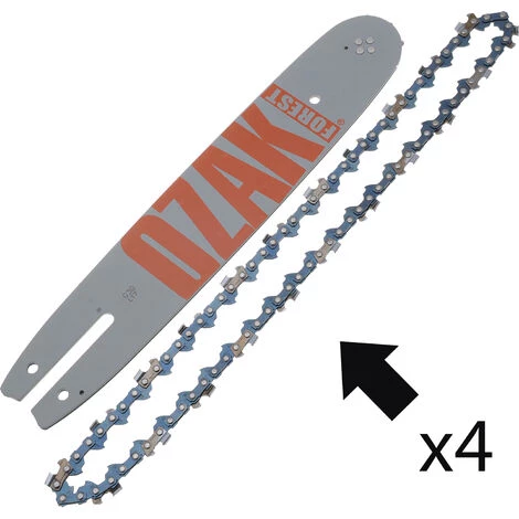 Ensemble comprenant 1 guide Pro 30cm + 4 chaînes pour tronçonneuse 44 maillons entraineurs Pas 3/8 jauge 0.50 (1.3mm). Correspondances Oregon : Guide 120SPEA074, Chaînes 91-44E, se monte sur les marques ALPINA, BLITZ, CASTEL, CASTOR, DYNAMAC, GARDEN, METABO, NAUTAC, OLEO MAC, STIHL, STIGA et VAP, voir tableau d’affectation en photo. Découvrez également notre kit 1 guide + 1 chaine 44 maillons entraineurs ou guide vendu seul.