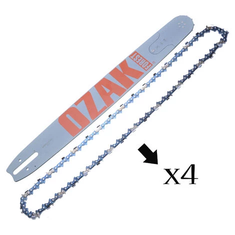 Combo guide professionnel pour tronçonneuse avec nez interchangeable livré avec 4 chaînes de 72 maillons. Longueur de coupe 50cm, Pas 3/8, jauge 1.6mm (063). Ce guide convient pour les marques de tronçonneuse suivantes : AEG, Logosol et Stihl. Egalement disponible seul ou 1 guide + 1 chaîne 72 maillons entraineurs. Version standard (sans nez interchangeable) disponible.