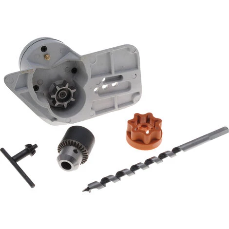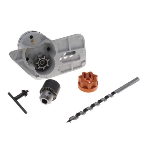 Kit perceuse adaptable sur tronçonneuse Stihl 021, 023, 025 ou MS210, MS230 et MS250 et tronçonneuse Holzfforma G255. Cet ensemble se monte à la place du guide, la liaison est assurée entre le pignon (ATTENTION pignon à 6 dents en 3/8LP OBLIGATOIRE, ne convient pas avec pignon en 325 !) et la tronçonneuse par un coupleur. Percez des trous n’importe ou en toute tranquillité, pas de fil, pas de batterie, juste votre tronçonneuse. Livrée complet avec mandrin, clé à mandrin et un forêt à bois pour tester rapidement les capacités de cette perceuse thermique.