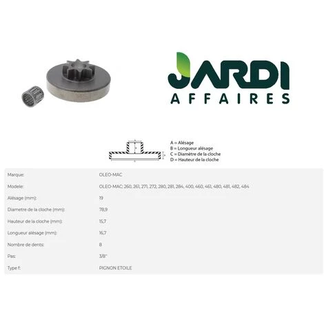 JARDIAFFAIRES Pignon 8 Dents Pour Tronçonneuse Oleo Mac Pas 3/8