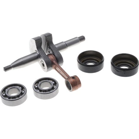 Vilebrequin adaptable de qualité livré avec bagues étanches et roulements pour tronçonneuse Husqvarna 340, 345, 350 ou 351 (autres modèles à confirmer) et tronçonneuse Jonsered 2041, 2045 ou 2050 (autres modèles à confirmer). Cet ensemble remplace les références 503858071 (vilebrequin), 738220225 (roulements) et 503932302 (bagues étanches). ATTENTION : Merci de vous assurer de vos références d’origine avant de passer commande (plusieurs montages sont possibles en fonction des modèles de tronçonneuse indiqués dans la description)