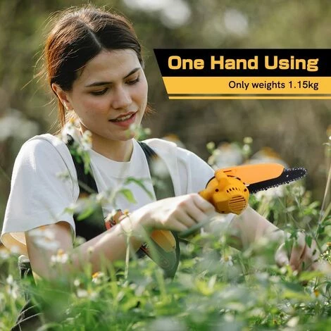 TRONÇONNEUSE À UTILISATION À UNE MAIN. La tronçonneuse sans fil ne pèse que 1,15 kg, les femmes peuvent facilement la contrôler et l’utiliser d’une seule main pour sa conception légère. Il assure le confort des utilisateurs pour les mains, minimise votre fatigue pendant une longue période de travail. Portable que la tronçonneuse filaire, plus rapide que les scies alternatives et plus légère que les scies à essence.