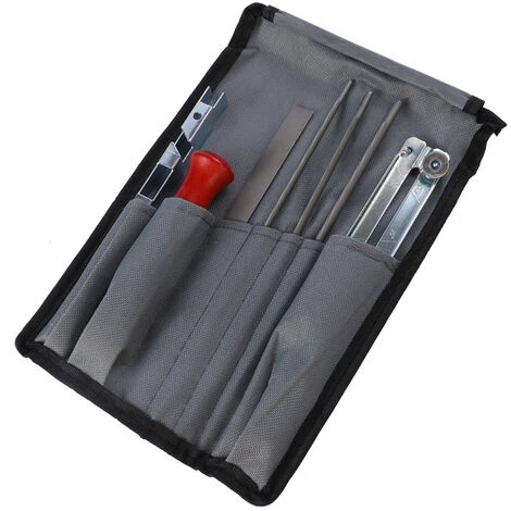 Facile à utiliser : la lime à tronçonneuse dispose d’un manche en bois épais pour une prise en main confortable, prend en charge la fixation de n’importe quel outil de lime et sondeur, et peut être utilisée avec n’importe quelle chaîne de scie.