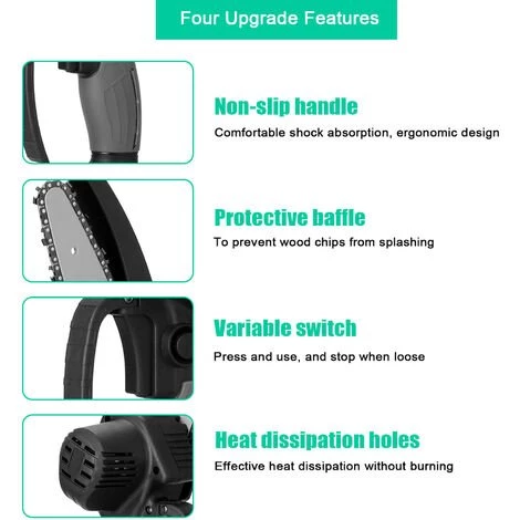 Il s’agit d’une sorte de scie d’élagage de qualité, fabriquée dans un matériau de qualité supérieure, pratique, facile à utiliser et à utiliser, large gamme d’applications, longue durée de vie. Adopte le moteur de brosse, le démarrage rapide, le freinage en temps opportun, la régulation de la vitesse en douceur dans une large plage, le contrôle relativement simple du circuit, etc. La chaîne de scie a été trempée en profondeur à haute température, avec des dents de scie affûtées, une coupe plus lisse et plus résistante à l’usure. Parfait pour l’élagage, le fendage du bois de chauffage, la coupe du bois, etc. Vous pouvez essayer.