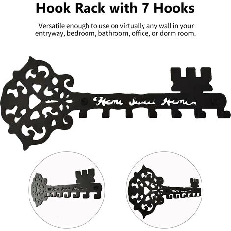 Caractéristiques :[Forme spéciale] La conception délicate en forme de clé ajoute une touche de classe et de distinction à votre maison.[Conception des crochets] Les crochets pratiques conviennent pour sécher vos essentiels de salle de bain entre les douches ou simplement pour suspendre de petits objets au quotidien.[Usage multiple] Convient pour suspendre des essuie-mains, des serviettes de bain, des manteaux, des chapeaux, des sacs à main, des sacs à linge et des clés.[Haute qualité] Fabriqué en acier au carbone, un corps robuste et résistant assurant une longue durée de vie antirouille et imperméable.[Utile] Assez polyvalent pour être utilisé sur pratiquement n’importe quel mur de votre entrée, chambre, salle de bain, bureau ou dortoir.