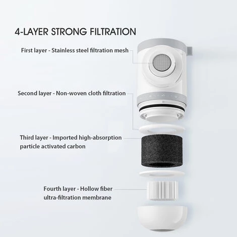 Le purificateur d’eau du robinet Mijia adopte une fenêtre transparente nouvellement conçue de l’élément filtrant, qui peut voir directement le processus de filtrage de l’eau du robinet à travers la membrane filtrante et observer l’utilisation de l’élément filtrant à tout moment. Il existe quatre systèmes de filtration, à savoir le filtre en acier inoxydable, le filtre non tissé, le charbon actif et la membrane d’ultrafiltration à fibres creuses, dans lesquels la précision de filtration de la membrane d’ultrafiltration à fibres creuses est de 0,1 μm, ce qui peut filtrer efficacement les bactéries nocives dans l’eau tout en retenant les minéraux. qui sont bénéfiques pour le corps.