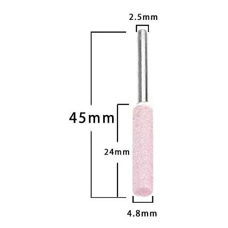 【Taille】 Diamètre de la tête de meulage : ) : 4,8 mm. Diamètre de la tige : environ ) : 2,8 mm. Longueur de la tête de meulage : environ ) : 24 mm.Longueur totale (env. ) : 45 mm.