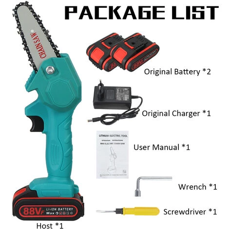 – Tronçonneuse électrique rechargeable, légère et portable, longue durée de vie de la batterie, aucun dommage à l’écorce.