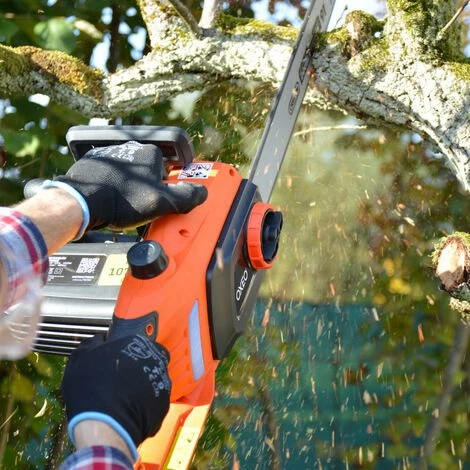 Cette tronçonneuse puissante convient parfaitement pour couper des arbres et des bûches sans forcer. Elle possède une bonne vitesse de coupe. Très bonne prise en main grâce à la poignée revêtu de caoutchouc et grâce à son poids plus léger qu’une tronçonneuse thermique.