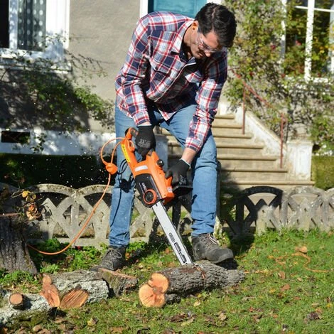 Pour réaliser des travaux d’abattage d’arbre et de coupe de bois sans forcer, la tronçonneuse électrique est idéale ! Sa bonne prise en main et sa puissance de 2200w en font une tronçonneuse utile pour vos activités de coupe à domicile.