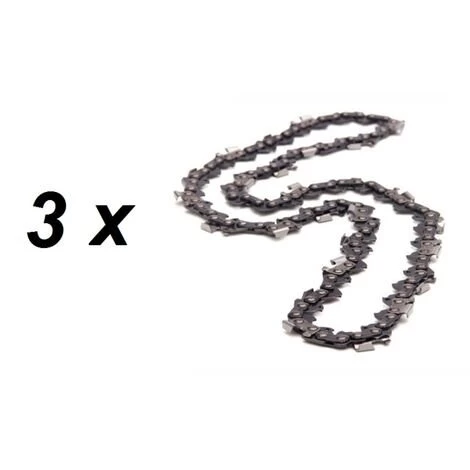 Lot de 3 Chaines affûtées « good quality » de 40 maillons pour guide de 10 pouces (25 cm) .- L’un des meilleurs rapport qualité prix du segment. Caractéristique techniques : Taille : 0.375 / 1.3 mm / 40 Maillons ou 0,380 / 1,3mm / 40 maillonsPeut s’adapter sur les marques suivantes * : Timberpro, GT Garden, Fuxtec, Silex, Berlan, Chester, Elem, Greencut, Hyundai, Mac Dillen, Mytek, Mister-Five, Plantiflex, Racing, Roxon, Scion,Sheppach, Timbertech, Varan, Viron … etc * Merci de vérifier vos correspondances avant tout achat (La taille de votre guide, le nombre de maillons de vos chaines, le pas de la chaine, l’écartement de votre guide). VENDEUR PRO FRANÇAIS Expédiée par la poste depuis la France, livraison sous 24 à 72H