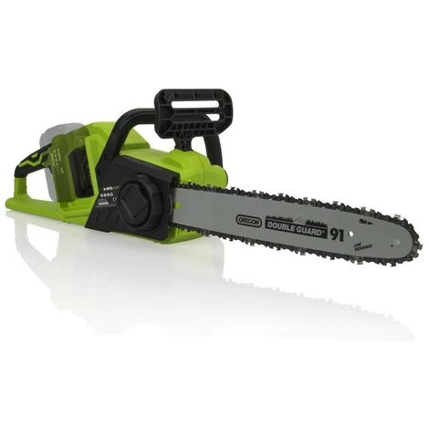 Alimentée par deux batteries de 20V (non incluses), la tronçonneuse électrique sans fil a été conçue pour offrir un meilleur contrôle et une plus grande sécurité à l’utilisateur.