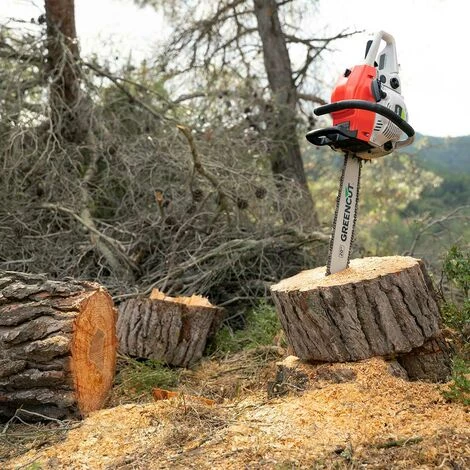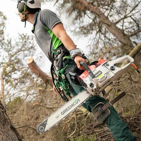 Tronçonneuse GS620X GREENCUT thermique pour abattage et élagage à moteur à essence avec lame de 20″, idéale pour les personnes qui ont besoin d’une scie à chaîne puissante et efficace pour abattre ou tailler des arbres ou tout autre type de travaux forestiers.