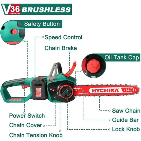 - Grâce à la fonction de tension de la chaîne sans outil, vous pouvez facilement régler la tension de la chaîne selon vos besoins.