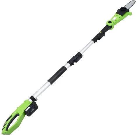 La scie à perche est fournie avec un chargeur et une batterie Li-ion 20V 1500 mAh. Elle a également une durée de fonctionnement maximale de 20 minutes.